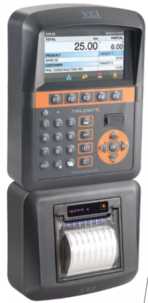 K váhovému indikátoru je možné pripojiť vysoko-rýchlostnú termo tlačiareň so šírkou tlače 58 mm, poprípade SLIP tlačiareň, pomocou ktorej môžte vytlačiť tri váženky súčasne na predtlačenom lístku. . Vážny lístok obsahuje požadované dáta o nakládke ako napr. hlavička firmy, dátum, čas, hmotnosť, počet naložení, názov tovaru, meno zákazníka, meno obsluhy, miesto nakladania, miesto doručenia, ŠPZ, voľné miesto pre podpis…. Samozrejmosťou sú denné reporty podľa materiálu alebo zákazníka. Tlačiareň je pripojiteľná priamo pod indikátor, vďaka čomu tvorí jeden kompaktný celok.