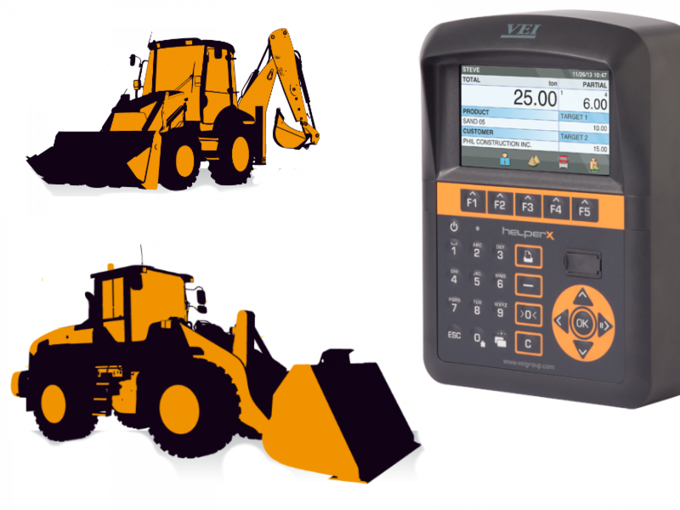 Inštalácia presného a spoľahlivého palubného vážiaceho systému umožní obsluhe efektívne riadiť vyťaženosť vozidiel, znížiť dopravné náklady, riadiť skladové zásoby a v neposlednom rade zvýšiť celkovú produktivitu práce.Rada nových váhových indikátorov s farebným HD displejom umožňujú nielen okamžité váženie materiálu počas nakládky, ale poskytuje aj prídavné funkcie informačného charakteru ako napr. vyťaženie stroja, pohyb materiálu, pracovný čas obsluhy atď. Displej je výborne čitateľný aj na priamom slnečnom svetle. Vďaka podsvietenej klávesnici je lokalizácia tlačidiel bezproblémová.