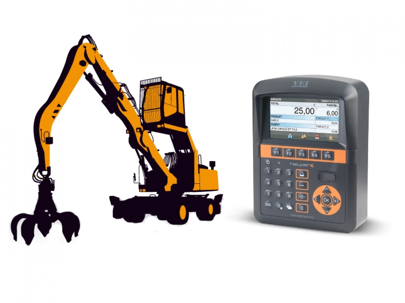 Koľkokrát musíte prerušiť svoju prácu, keď nepoznáte aktuálnu hmotnosť nakladaného materiálu v prevádzkach, v ktorých sú limitujúce podmienky pre pohyb a manipuláciu. Vďaka váhe inštalovanej na nosnom drapáku odčítavate hmotnosť priamo v kabíne stroja. Pomocou váhy môžete aj rozoznávať rôzne typy materiálov, s ktorými manipulujete na vašej prevádzke, plánovať časové vyťaženie stroja a mať prehľad o obchodných nákladoch a výnosoch.