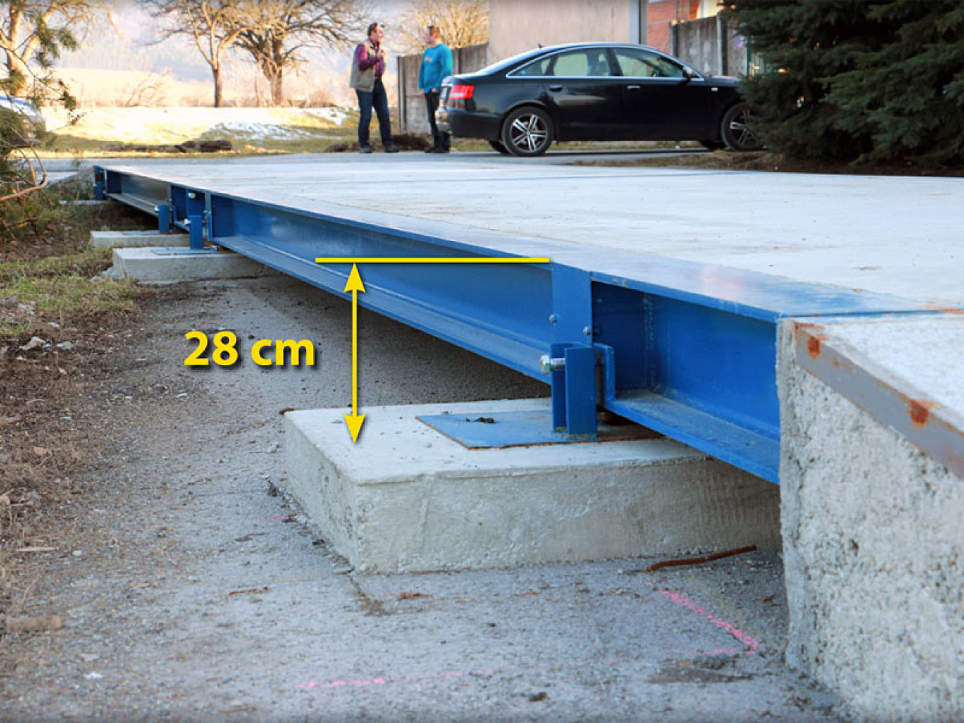 Certifikovaný vážiaci most železobetónovej konštrukcie, ktorý spĺňa požiadavky európskych technických noriem pre váhy a vážiace mosty. Mosty sú po svojej pozdĺžnej a priečnej strane olemované špeciálnym profilom, ktorý zabraňuje poškodzovaniu a odlamovaniu z vážiaceho mostu pri náhodnom údere vozidla a manipulačného stroja. Taktiež zvyšuje jeho pevnosť a zabezpečuje stabilitu aj pri intenzívnom používaní.